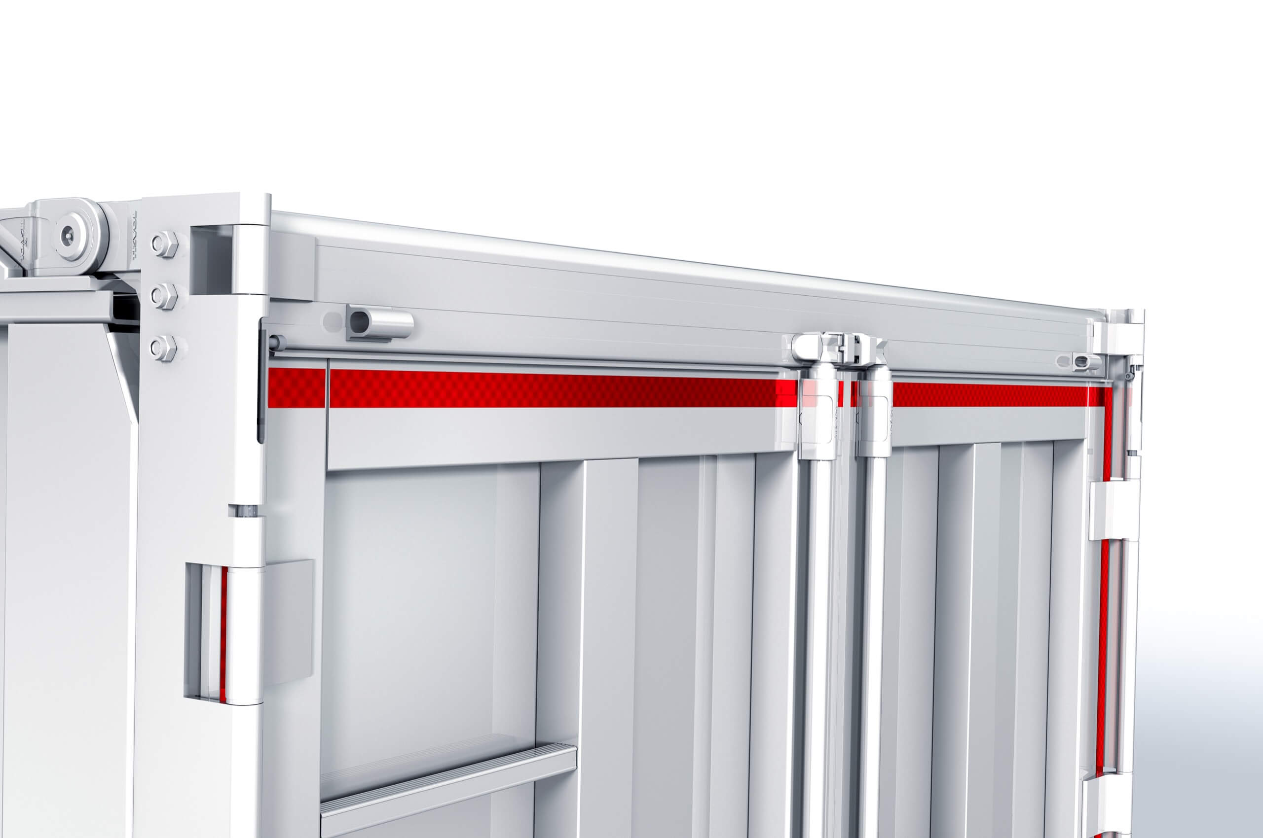 Az egy darabból álló ajtó választható 15º-os döntési szöggel rendelkező ajtó kivitelben.